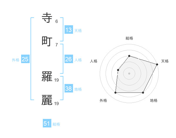 寺町 羅麗さんを姓名の画数から五運を鑑定