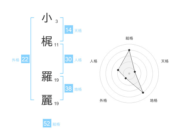 小梶 羅麗さんを姓名の画数から五運を鑑定