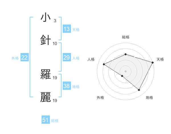 小針 羅麗さんの総格は51画の3点!