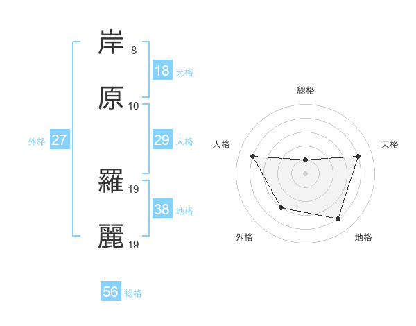 岸原 羅麗さんを姓名の画数から五運を鑑定