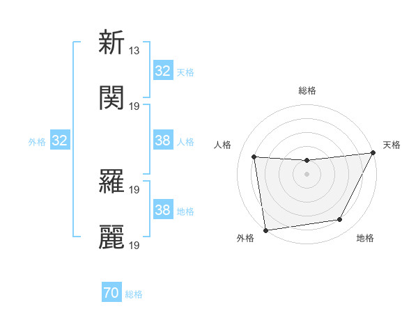 新関 羅麗さんの天格は32画の5点!