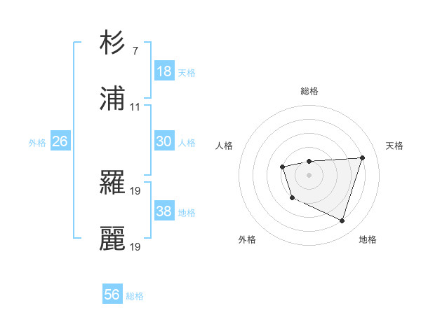 杉浦 羅麗さんを姓名の画数から五運を鑑定