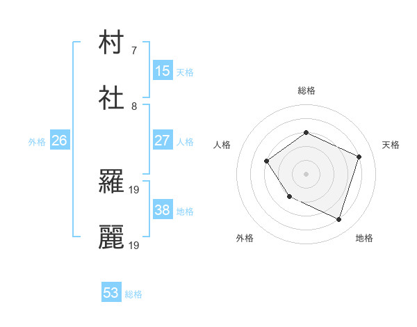村社 羅麗さんを姓名の画数から五運を鑑定