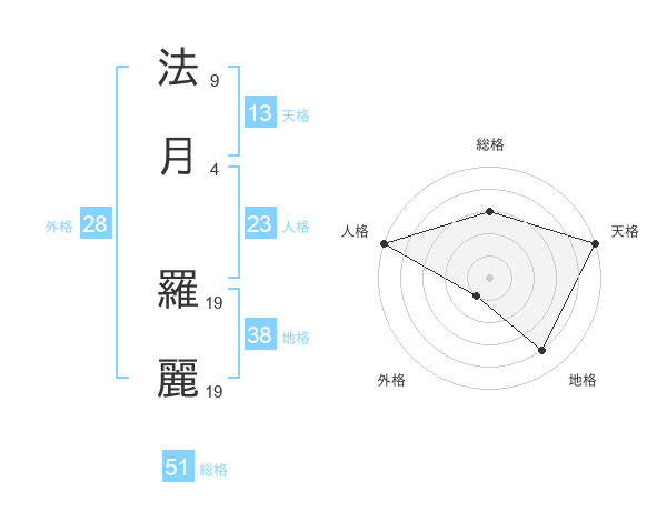 法月 羅麗さんの総格は51画の3点!