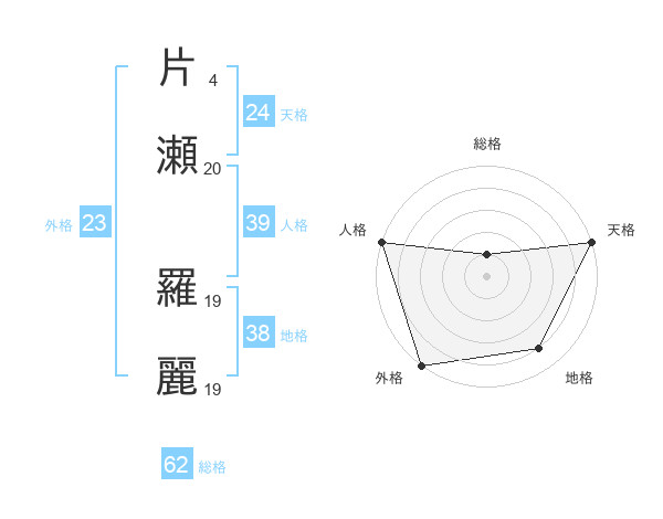 片瀬 羅麗さんの天格は24画の5点!