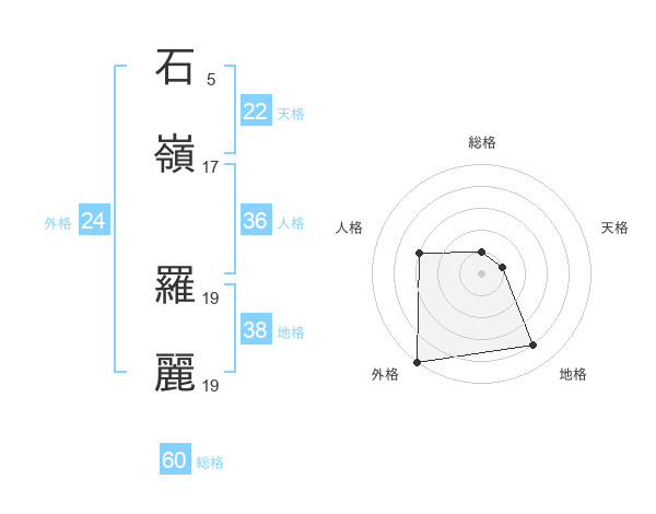 石嶺 羅麗さんの総格は60画の1点!