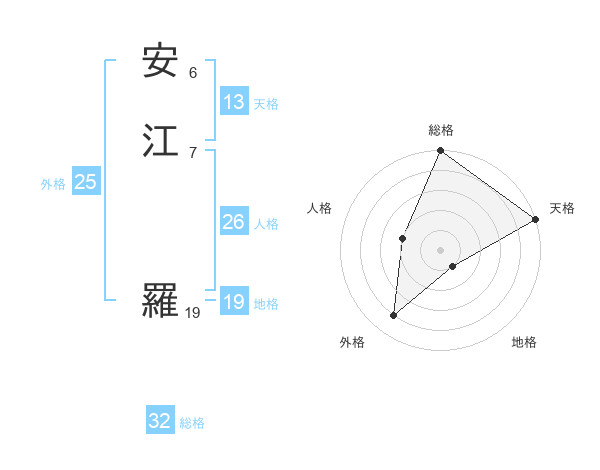 安江 羅さんの総格は32画の5点!