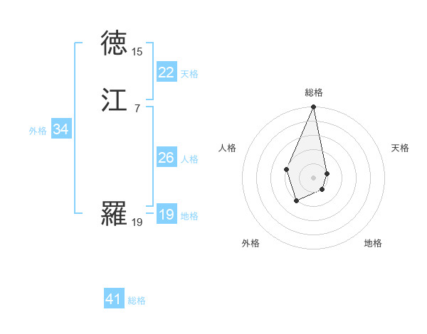 徳江 羅さんの天格は22画の1点!