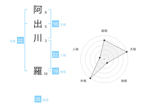 阿出川 羅さんを姓名の画数から五運を鑑定