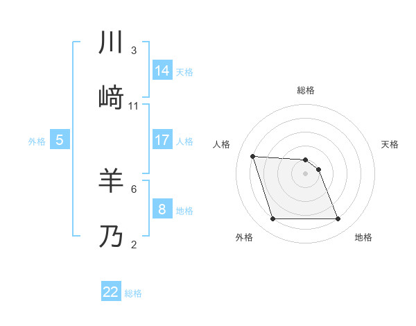 川﨑 羊乃さんを姓名の画数から五運を鑑定