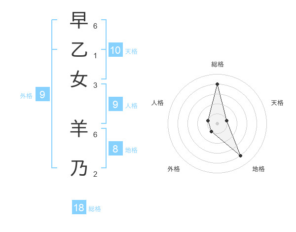 早乙女 羊乃さんを姓名の画数から五運を鑑定