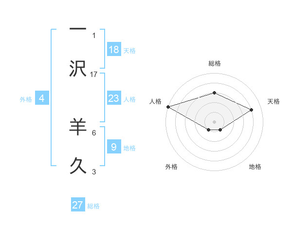 一沢 羊久さんを姓名の画数から五運を鑑定
