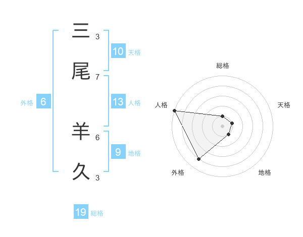 三尾 羊久さんを姓名の画数から五運を鑑定