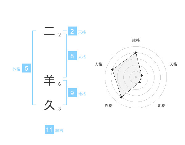 二 羊久さんの総格は11画の4点!
