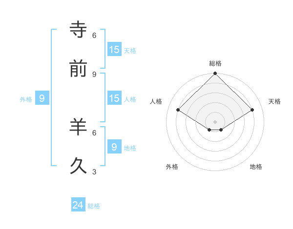 寺前 羊久さんの総格は24画の5点!
