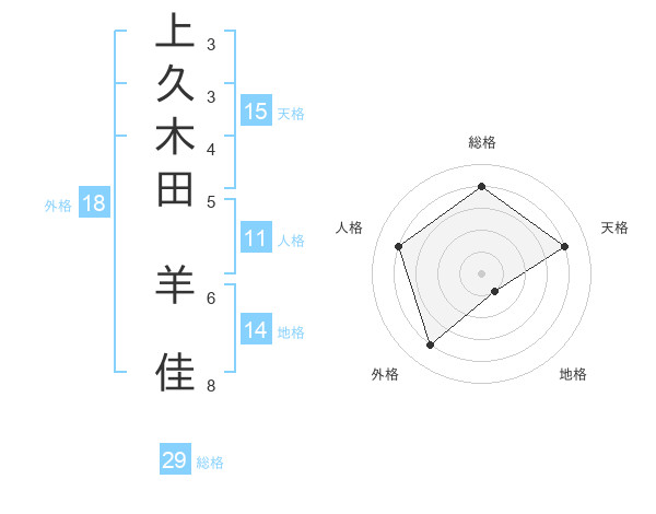 上久木田 羊佳さんを姓名の画数から五運を鑑定