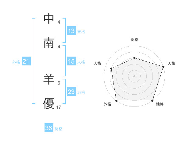 中南 羊優さんの外格は21画の5点!