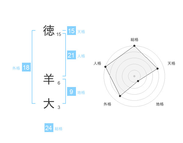 徳 羊大さんの総格は24画の5点!