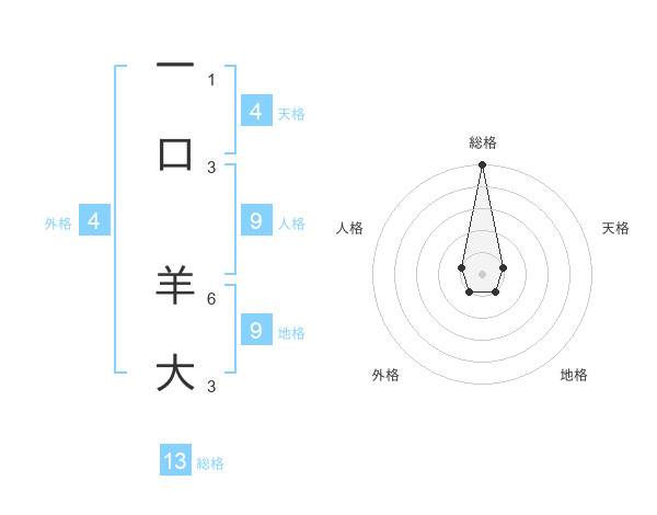 一口 羊大さんの総格は13画の5点!