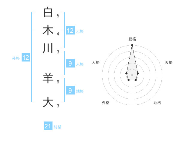 白木川 羊大さんの総格は21画の5点!
