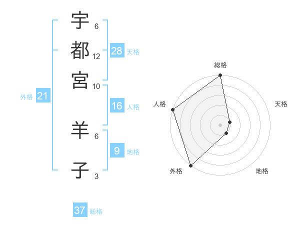 宇都宮 羊子さんを姓名の画数から五運を鑑定