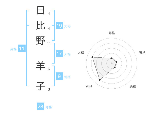 日比野 羊子さんを姓名の画数から五運を鑑定