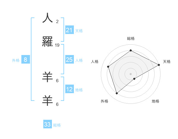 人羅 羊羊さんの総格は33画の4点!