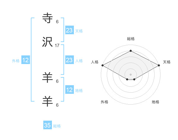 寺沢 羊羊さんを姓名の画数から五運を鑑定