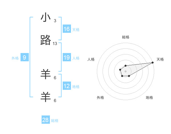 小路 羊羊さんの総格は28画の1点!