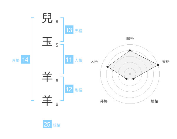 兒玉 羊羊さんを姓名の画数から五運を鑑定