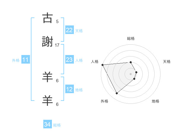 古謝 羊羊さんの外格は11画の4点!