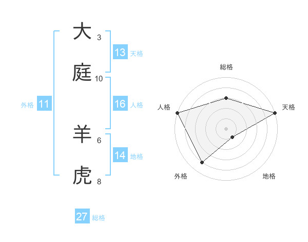 大庭 羊虎さんを姓名の画数から五運を鑑定