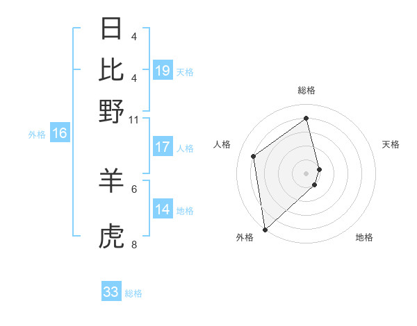 日比野 羊虎さんを姓名の画数から五運を鑑定