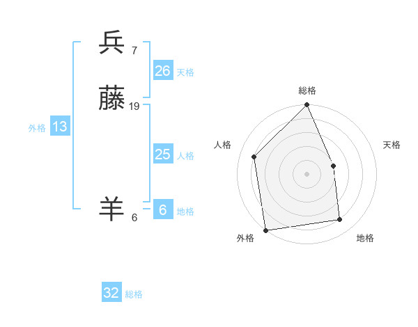 兵藤 羊さんの天格は26画の2点!