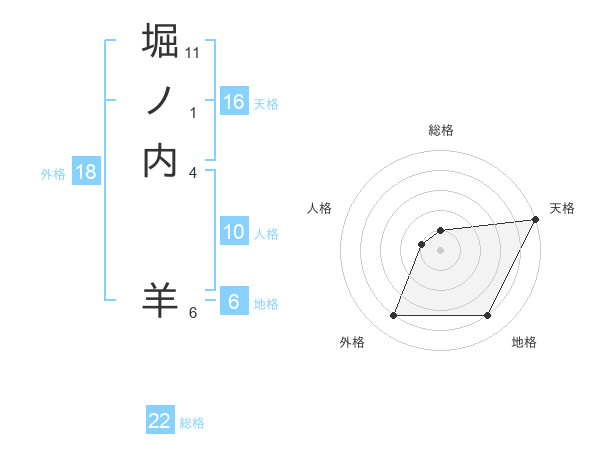 堀ノ内 羊さんの総格は22画の1点!