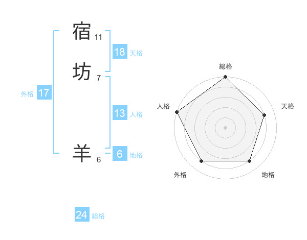 宿坊 羊さんの総格は24画の5点!