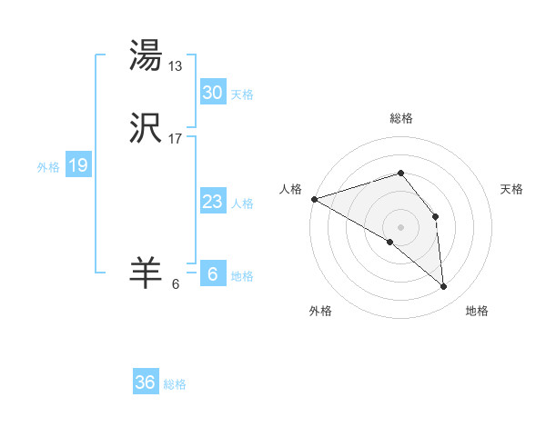 湯沢 羊さんの総格は36画の3点!