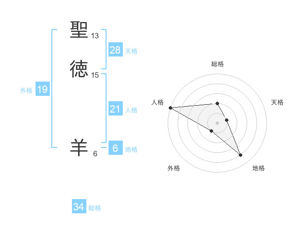 聖徳 羊さんの総格は34画の2点!