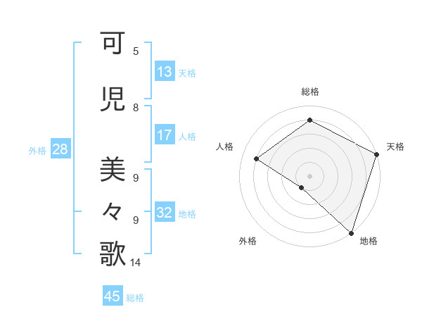 可児 美々歌さんを姓名の画数から五運を鑑定