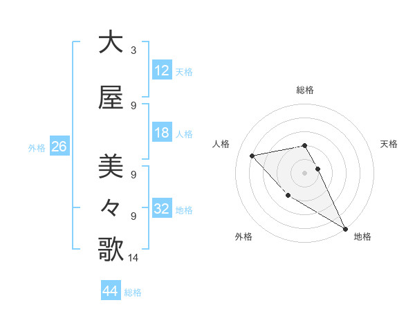 大屋 美々歌さんの総格は44画の2点!