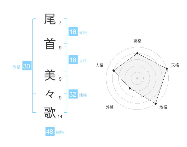 尾首 美々歌さんの天格は16画の5点!