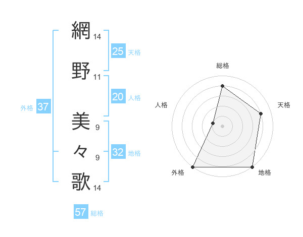 網野 美々歌さんの外格は37画の5点!