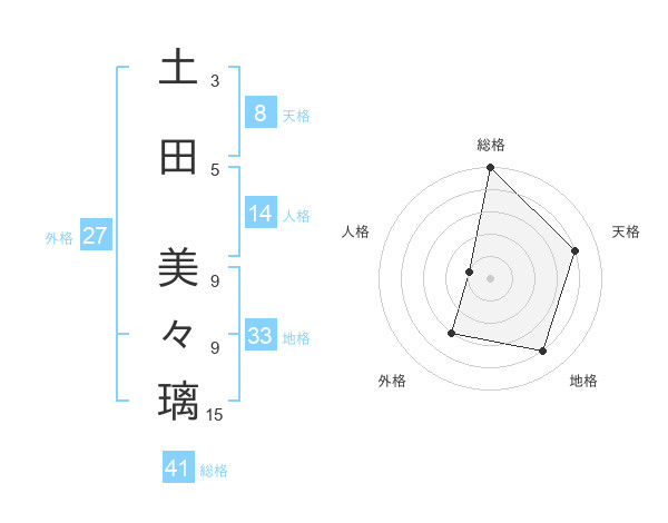 土田 美々璃さんを姓名の画数から五運を鑑定