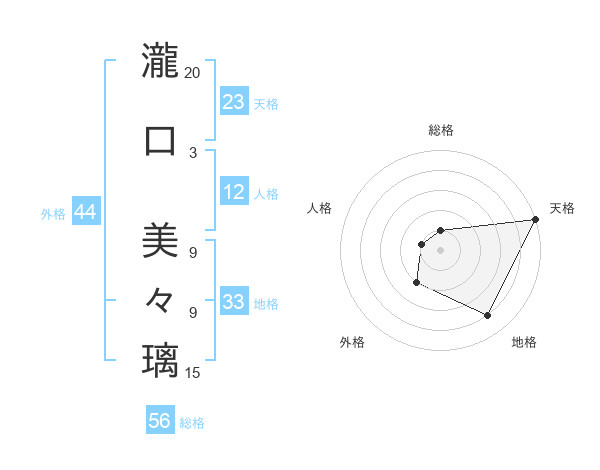 瀧口 美々璃さんを姓名の画数から五運を鑑定