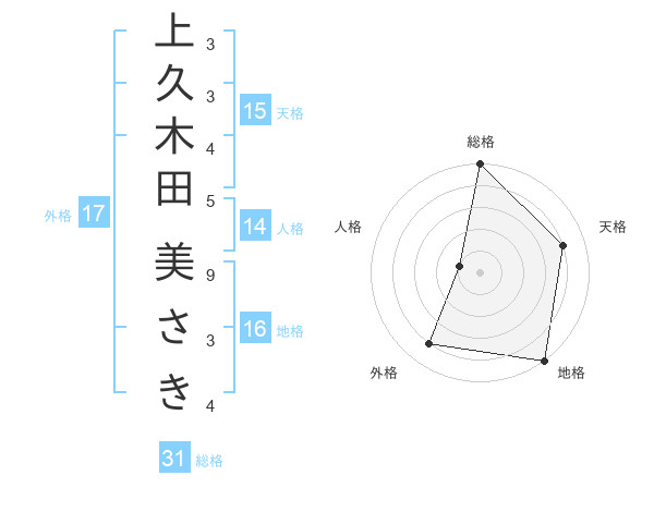 上久木田 美さきさんを姓名の画数から五運を鑑定