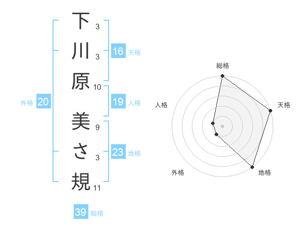 下川原 美さ規さんを姓名の画数から五運を鑑定
