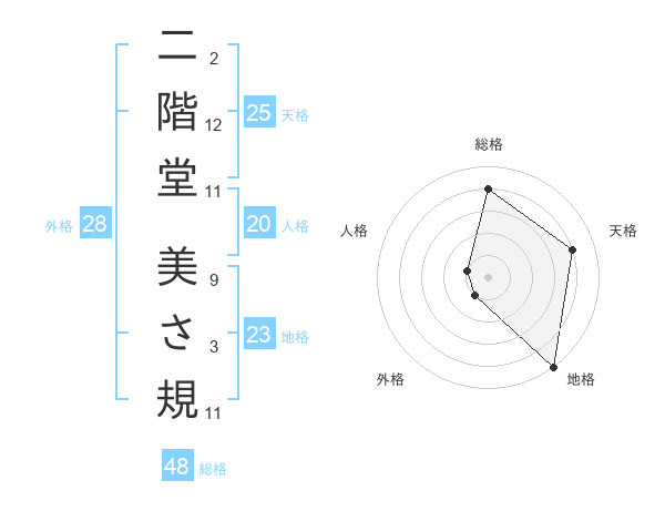 二階堂 美さ規さんの天格は25画の4点!