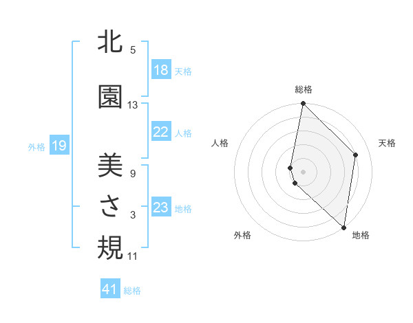 北園 美さ規さんを姓名の画数から五運を鑑定