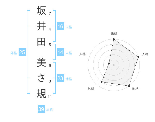 坂井田 美さ規さんを姓名の画数から五運を鑑定