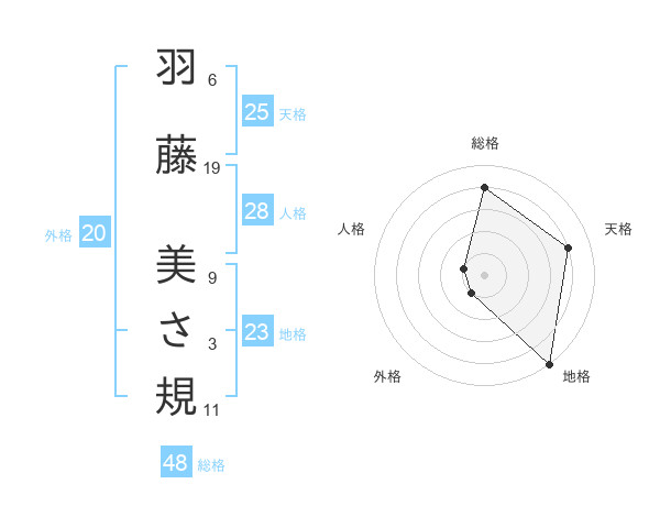羽藤 美さ規さんの総格は48画の4点!